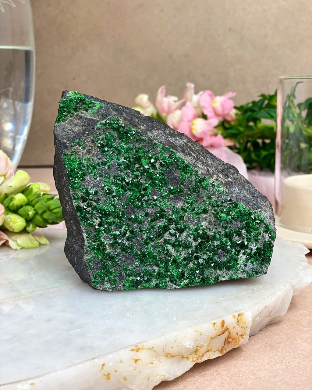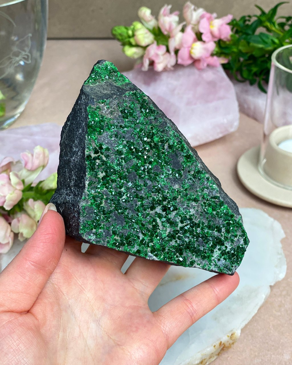 Luxusní minerál Uvarovit surový Ural AAA 606g