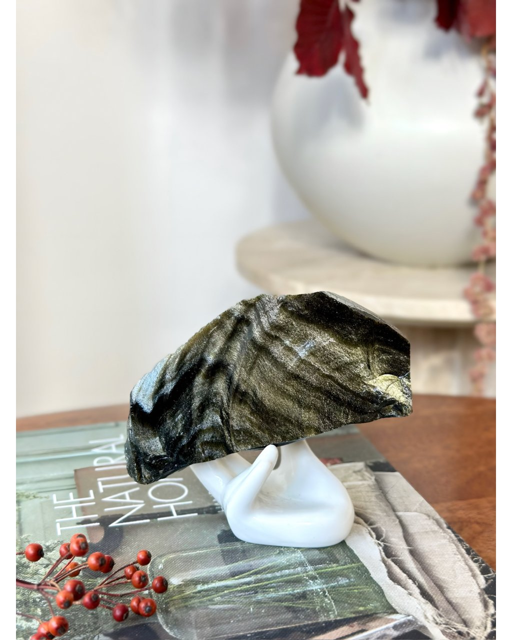 Jsem silně ochranný kámen vytvářející štít proti všemu negativnímu. Pohlcuji negativní energii z okolního prostředí a ve chvílích, kdy je to třeba, dokáži posilovat svého nositele. Přináším pomoc vysoce citlivým lidem. Dokáži zablokovat duševní útoky a odstraňuji negativní duchovní vlivy. Zavedu vás do vašeho nejhlubšího nitra a vynesu na povrch pravdu a všechny nevyřešené rozpory, jež byly odsunuty do podvědomí. Pomáhám oprostit se od vnějších vlivů, můžu prolomit všechny blokády, aktivuji logické myšlení.