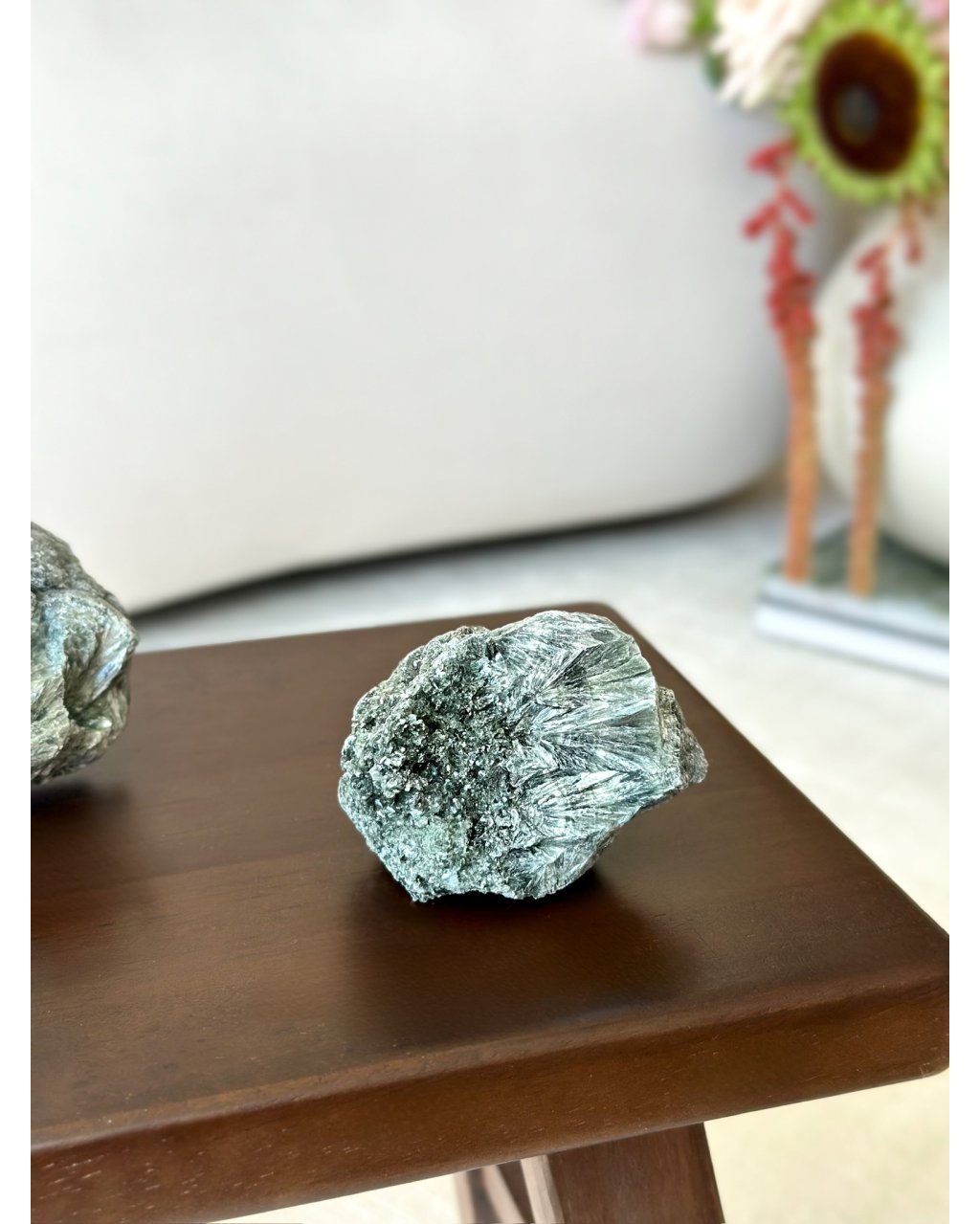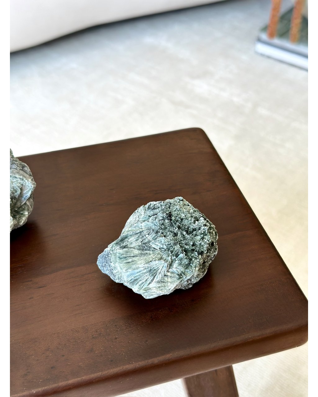 Serafinit je kamenem duchovního osvícení a jemným průvodcem na cestě samoléčby. Jeho energie otevírá korunní a vyšší korunní čakru, propojuje člověka s andělskou říší a zvláště s Serafíny, nejvyššími z andělských bytostí. Jeho stříbřitě zelené žíly připomínají opeřená křídla, která pozvedají ducha a vedou k vyšším vibracím, k čistotě srdce a k hodnotám, jež přesahují pozemské vnímání.