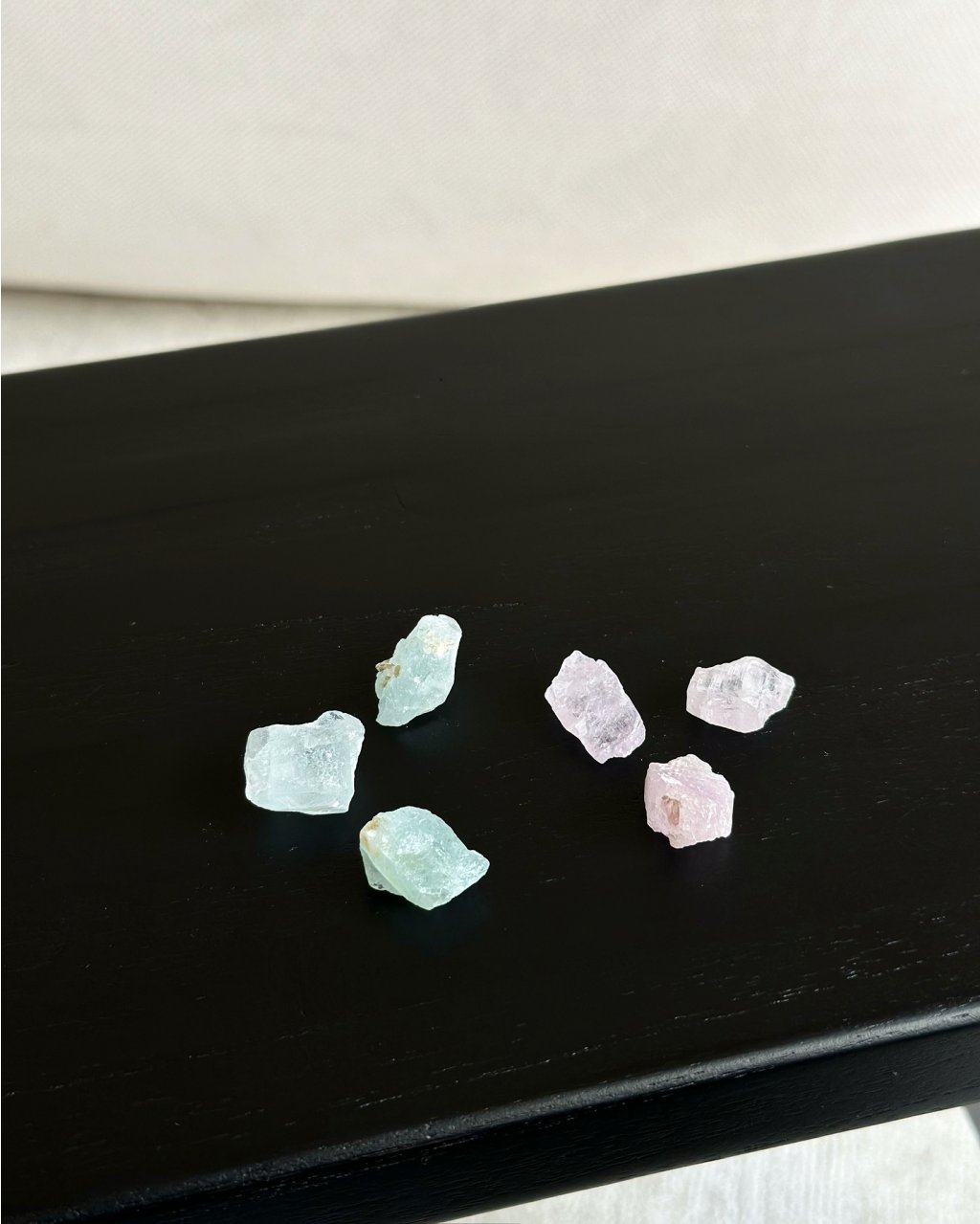 Set 6ks akvamarín a kunzit Pákistán 17g