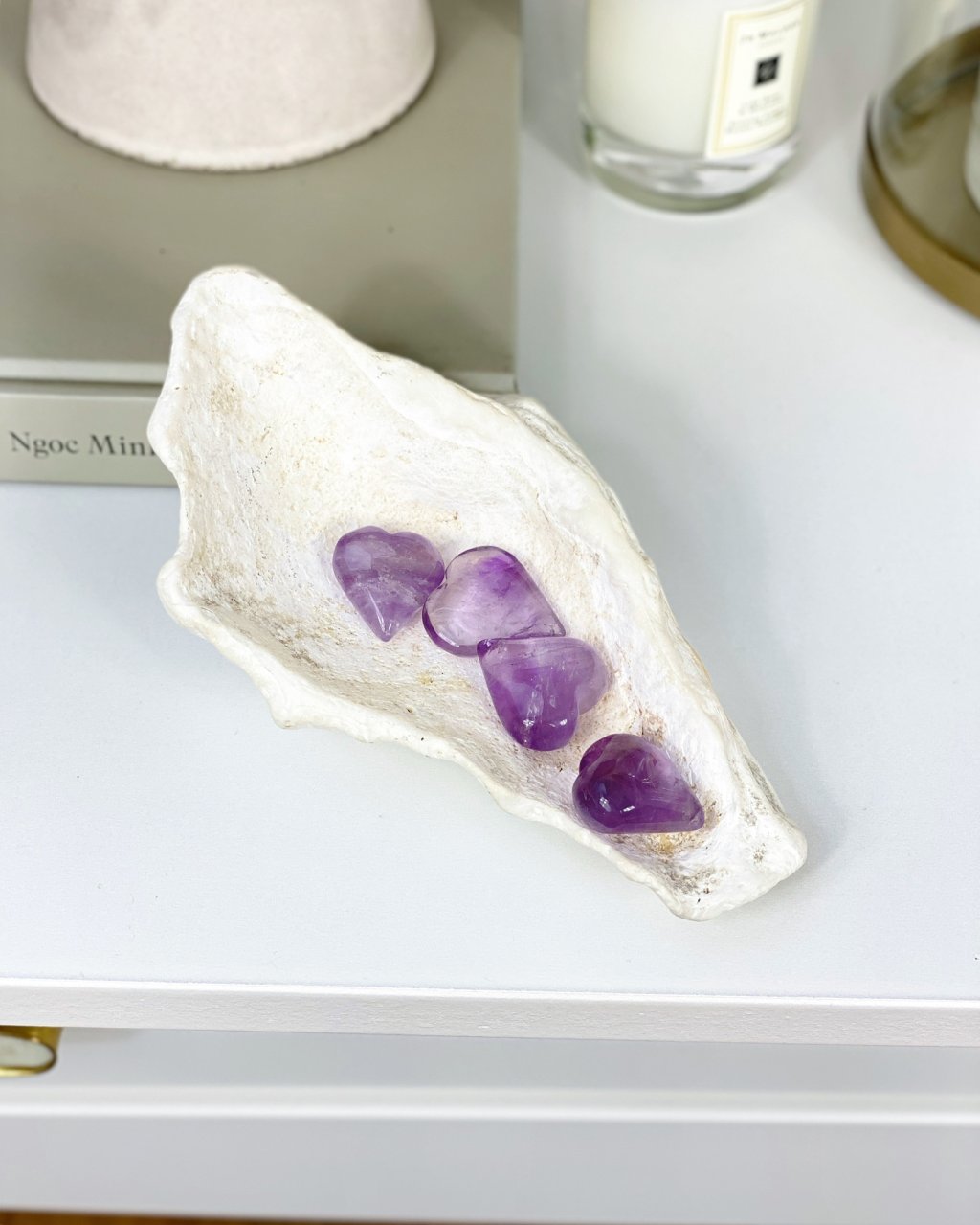 Očista: opláchněte pod proudem vlažné vody, nebo v misce s vodou společně s křišťálem, můžete také použít kouř z vykuřovadla, poté nabijte ve stínu, aby neztratil svou fialovou barvu