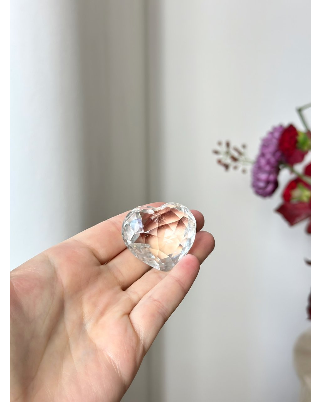 Díky preciznímu fazetování se v srdíčku při každém dopadu světla objeví nové odlesky, jako by krystal odhaloval skryté vrstvy poselství. Je to dar, který neztrácí sílu časem, naopak, záměr v něm uložený se stává tichým a stálým průvodcem toho, komu je srdce věnováno.