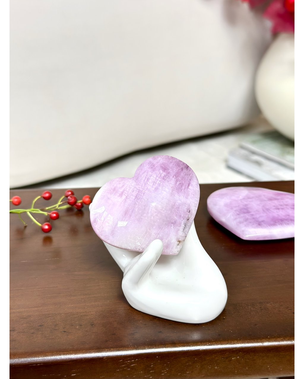 Polodrahokam kunzit leštěné srdce Nigérie 76g AAA