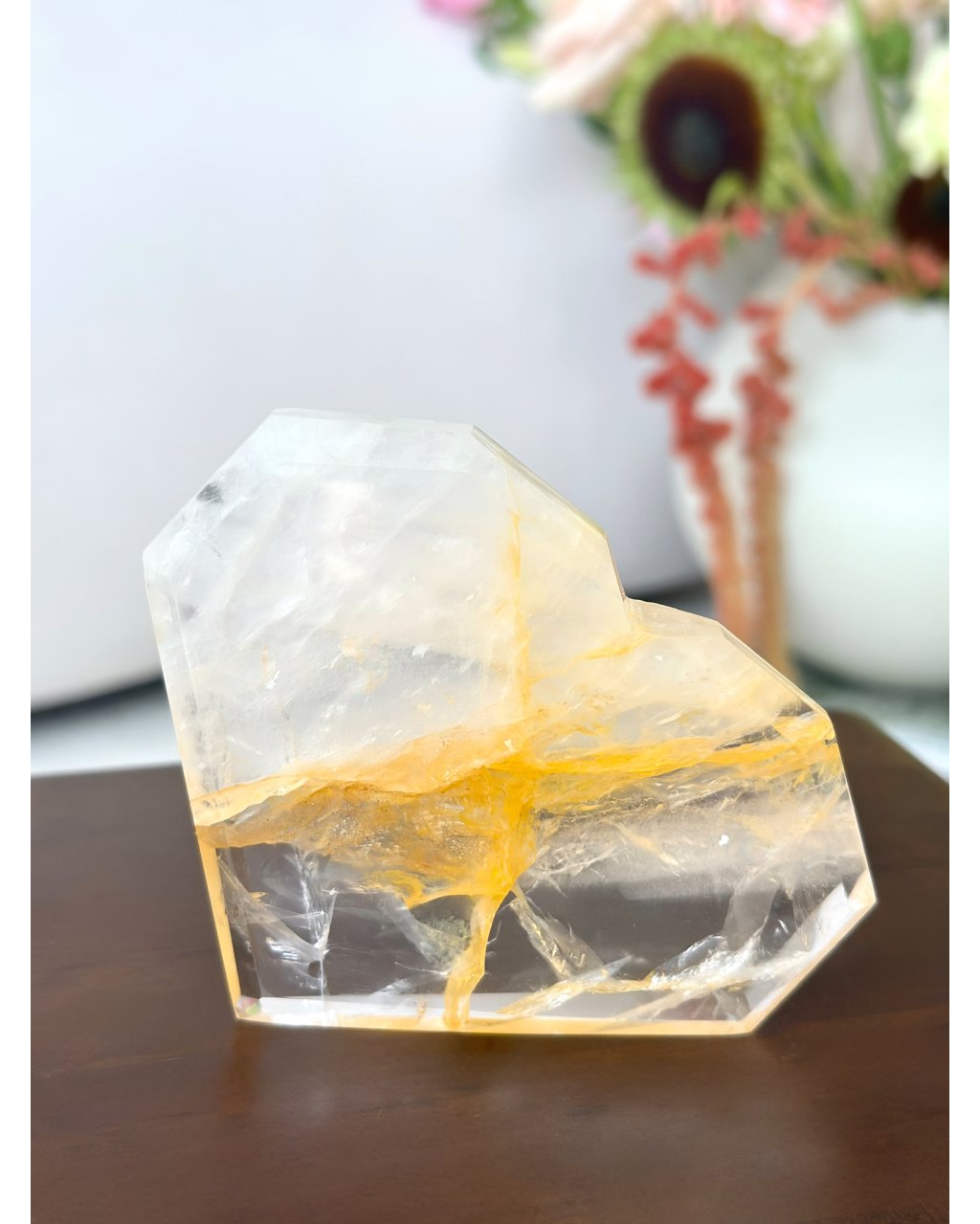 Srdce zlatého léčitele funguje jako průvodce vnitřním světlem, otevírá kanály intuice, čistí staré bloky a podporuje tok životní síly. Barevné odlesky krystalu a jeho zlatá vibrace přinášejí pocit lehkosti, radosti a vnitřního klidu, zatímco plazmatická struktura jemně harmonizuje energii prostoru.