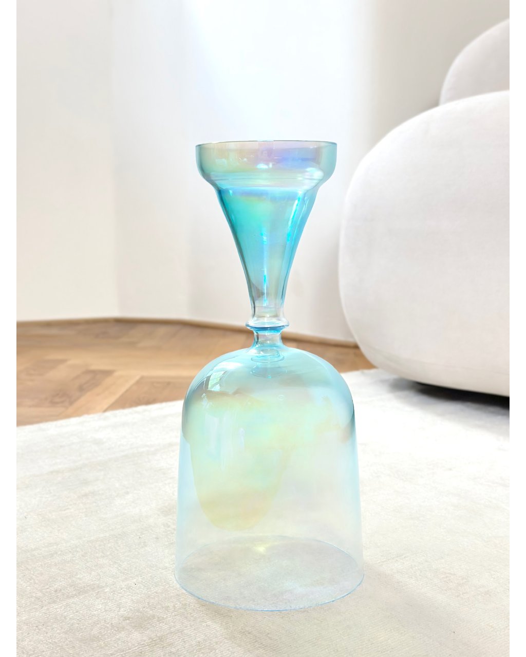 Z ranní mlhy a dechu oblohy se zrodil světle modrý kalich. Nástroj klidu, pravdy a hlubokého naslouchání. Jeho jemný zvuk v tónu A vibruje s energií třetího oka, místem jasnosti, intuice a tichého vedení duše.